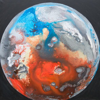 After a longer time of inactivity I completed an acryllic painting on canvas entitled "Planet of Colours", 80 x 80 cm